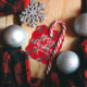 Julgranar & tigrar mönster röd bakgrund gåvor etiketter