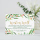 Detta julgranlyckta bröllopshälsningsskrin-kort är perfekt för ett vinterbröllop. Designen har en akvarellgrön krans med röda bär och en elegant falsk guldglitterfont. Personifiera detta inbjudningskort med era namn och en kort hälsningspoesi.