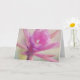 Min originalkonst pryder detta vackra blomsterkort med ett foto av en rosa julgransaktus blomma, stiliserad med en akvarellmålad stil för ett konstnärligt utseende. Kortet är tomt på insidan så att du kan skriva dina personliga brev och meddelanden.