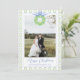 Det här vackra julkortet har en akvarell julgranskrans och blå ram för ett foto. Det är perfekt om du letar efter ett klassiskt, sydligt, grandmillenialt, kustnära julkort.