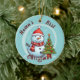 Personlig julgransprydnad för baby:s första jul-snöman med namn och år.