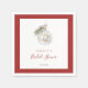 Minimalistiska servetter för bröllopsfesten i vinter med en akvarellillustration av en julgransprydnad med vigselringar, tallkvist och julbär. Med elegant handskriven kalligrafi.