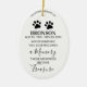 Julgransdekoration för minnet av husdjur med foto av ditt älskade djur, ett kondoleanscitat som lyder "när någon du älskar blir ett minne, blir dessa minnen en skatt", tassavtryck, namnet på din hund eller katt, och deras födelsedags-/dödsdatum. Placera den på din julgran eller någonstans i ditt hem, denna prydnad gör en unik present till någon speciell.