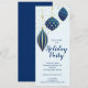 Mörkblå och gula julgransprydnader och prickar, dessa inbjudningskort till julfest - DIREKT NEDLADDNING eller UTRYCKT -