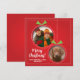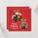 Sprid julglädje med detta anpassningsbara julkort. Med en enkel illustration av julgransprydnader bundna med gröna band och mot en gnistrande röd bakgrund, ger detta kort utrymme att lägga till en personlig julhälsning, familjenamn, ett älskat familjefoto och ett foto på din hund eller katt. Perfekt för att skicka julhälsningar till familj, vänner och nära och kära. Skapa ett unikt vykort med denna lättanpassade mall.