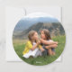 Unik och festlig, detta runda kort har en design som påminner om en julgransprydnad. Personalisera med ett familjefoto som sträcker sig ända ut till kanterna på baksidan.