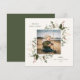 Festiv Jul Botanisk Lövverk Ram, platt vykort. Funktioner, Olivgrön färg typografi och matchande enfärgad baksida.