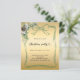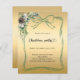 För en julfest med familj och vänner.. Dekorerad med en enkel handritad slinga, grönt och en tallkotte. Personifiera och lägg till detaljerna. Julfest med hjärta. Falsk guldgradientbakgrund.