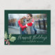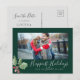 Detta julgröna God Jul spara datum-helgkort gör den perfekta enkla julhälsningen för ett förlovat par. Vinterjuldesignen har en mjuk, saffiansgrön akvarell-julgran med kvistar av klassiska röda julholberry.