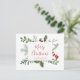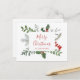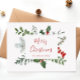 En vacker akvarell med grönt och röda bär inramar ditt meddelande på detta julkort. Kortet har en enkel, elegant typografi och gott om utrymme för personliga tillägg.