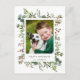 Detta julkort har målade akvarell röda bär, tallgrenar, eukalyptus och gröna blad med orden "Glad jul". Anpassa detta genom att ändra bilden med ditt eget foto och text.