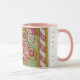 Julgröt, godis och en pepparkaksgubbe dekorerar denna kaffemugg. Designen är från en originalillustration.