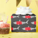 Lustigt papper julomslutning med en mönster av underbara vita hajar med röda fula jumper i Julafton. Underbar roligt för älskare av haj.