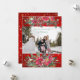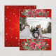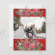 Julhälsning Röd Grön Tallkottskvist Foto Julkort . Elegant och rik blomster med tallkottar på en gnistrande snöflinga röd bakgrund. Detta är ett personligt fotohjulkort. Anpassa med din egen hälsning och foto.