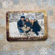 Skicka dina julhälsningar med denna stilrena rustika fotojulmagnet. Personifiera meddelandet, foto, familjenamn och datum. Designad av Thisisnotme©