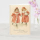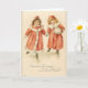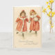 En gammal illustration från ett julkort visar två små flickor utklädda för en kall vinterdag med skridskoåkning. De två vännerna bär båda likadana rosa kappor kantade med vit päls och rosa mössor. En av flickorna har en muff i vit päls för att hålla händerna varma, men de har valt att hålla varandra i händerna medan de åker bredvid varandra. Framsidan av kortet säger "Julhälsningar och bästa önskningar" och meddelandet inuti kortet lyder: "Det finns många presenter under julgranen, men den bästa är gåvan av din vänskap."