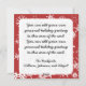 Ett lycklig-snögubbe med morot och röd rand-sjal, massor av snöflingor på festlig röd bakgrund, ett område som du kan lägga till ett foto och områden där du kan lägga till ditt personliga helgdag-meddelande och namn på Snögubbe-Julhälsningar kort är alla dina vänner säkra på för kärlek!