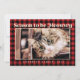 Designen består av ett rött och svart rutmönster. Lägg till ett eget foto på dig och din katt. Fotot är prytt med unika guldfärgade hälsningar - "Årstid att vara Meowwy"