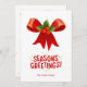 Dela varma julhälsningar med detta eleganta julkort som har ett rött band högst upp med en festlig mistel och ljusröda bär i mitten. Nedanför finns ett glatt “Julhälsningar”-meddelande omgivet av mjuka gula gnistor, vilket skapar en klassisk och glädjefull juldesign perfekt för att skicka till nära och kära. GCard-007