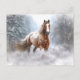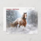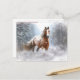 En majestätisk häst som står i snö mot en charmerande landskapsbakgrund skapar ett perfekt sätt att skicka säsongens hälsningar till helgdag.