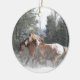 Snygg bild av snö av en appaloosa och arabian som springer genom ett nytt fallit snö, av Stephanie Laird. En söt helgdag som prydnadsföremål för hästälskaren!
