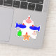 Den här fantastisk-klistermärket har en samling havslevande varelser som bär tomathattar. Bland de marina djuren finns ett par blåa fiskar, en kinkig tittar liten rosa krabba, en gult stjärnfisk, en glatt maneter och en söt liten grönt sköldpadda.