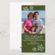 Den här designen har hibiscus snöflingor och en grönt bakgrund med vattenstämpeldesign. Om du vill ändra storlek på eller flytta fotot klickar du på knappen Anpassa det. Om du behöver mer utrymme för meddelandet kan du flytta runt snöflingor eller ta bort dem. Berätta om du har några frågor.