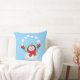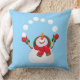 Detta kudder visas i blått med ett tryck för julhelgdagsnögubbe.