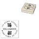 En cirkulär personlig gummistämpeldesign med julhagtorn ovanför och nedanför ditt familjenamn och omgiven av dina adressuppgifter. Perfekt för att lägga till en extra handstämplad touch på dina julkort.