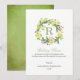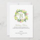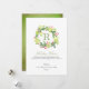 Designen har en lekfull grön och röd akvarellkrans med familjens monogram i rött, skrivstil och klassisk teckensnitt.