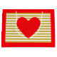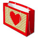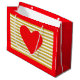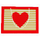 Rött julhjärta på guldfärgad och vit, rand bakgrundspresentväska. Text kan anpassas.