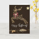 En julhjort i guld tillsammans med en stjärna och dekorationer ett vackert julkort.