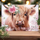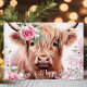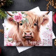 Fira helgdagarna med detta fantastiska julkort för vattenfärg med en charmerande höglandsko med vackra rosa ros och vinter-löv. Perfekt för dem som utformar kärlek boskap och blommigt ger det här unika kortet en smula elegans till dina semesterhälsningar. Skicka ditt varma önskemål i stil med detta festliga, blommigt-temakort!