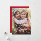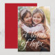 "Ett hoppets thrill, den trötta världen gläds." Skicka ett budskap om julhopp med detta vertikala kort med ett foto. Den borstiga skrifttypen ger kortet en modern känsla. Den röda stjärnbakgrunden koordinerar, men färgen kan ändras genom att klicka på "anpassa". Detta hoppfulla kort är det perfekta sättet att skicka julhälsningar, särskilt när man tillkännager något hoppfullt som en ny början - äktenskap, barn och mer.