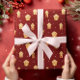 Julhus Gingerbröd på Mörk Red Background Presentpapper