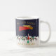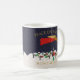 Det här inspirerande helgdag kaffet mugg är en ängel som flyger över en stad i snö. Ovanför står det "Fred på jorden" i faux-guld-typografin och nedanför är ett namn för dig att personifiera. Designad av konstnären ©Susan Coffey.