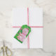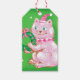 Enkel att anpassa Juletiketter för att skapa ett anpassningsbar-meddelande. Vintage illustrerar julens helgdag med en söt rosa katt med en julhatt och en rosa i hatt med klockor. Det förtjusande kattdjuret i håriget håller en julkrans och har ett rött band hängande från sitt svan. Startar gnistra på gröntens bakgrund.