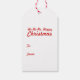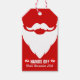 Märkre för julomslutning i varm röd och vit. Läser av HÄNDER fram till den 25 december, roligt fet jultomts/pappa jul berömd skägg och en grafisk jultryckt märkre. Anpassa med ditt eget hälsning och namn på andra sidan. Grafik och design av Sarah Trett.