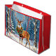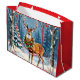 En verkligen söt helgdag presentsäck med en festlig hjort som står i en festlig vinter, härlig skog som dekoreras i julens roligt!