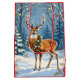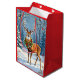 En verkligen söt helgdag presentsäck med en festlig hjort som står i en festlig vinter, härlig skog som dekoreras i julens roligt!