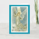 Vacker vintage bild av ängel i ljusstråle. Under det gamla manuset "För att önska dig jullycka". Färg är vitt, turkos och tan.