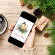 Kort för hälsning i elegant säsong med en vattenfärgad illustration av ett ljus i julklapp på en arrangemang av säsong, gräs, eukalyptus, bär och gröngul. "Glad helg" skrivs i ett skript med contemporaryns rött och du kan anpassa ditt namn i enkel modern typografi.