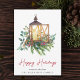 Juli Lantern Greenery Watercolor Julkort
