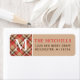 Helgdag returadressetikett har en rustik elegant beige, tan, brun och röd tartan som pläderar mönster-detalj med en returadress för inledande och anpassningsbar som kan vara personlig för din familj.