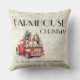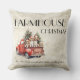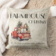 Julrött vintage lastbil i jordbrukshuset fylld med valpar av helgdag! "Det är den mest underbara tiden på året"-känslan på grund i den här kvaint stugan stil dekorativ kudde. Bakgrunden är ett glatt, vitt tvättat, västerlackerat utseende på land. Perfekt för alla hemskunder och en perfekt helgdag.
