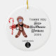 Bolagets Tack Healthcare Heroes Ceramic Ornament gör en perfekt till en viktig gåva för sjukhuspersonal eller sjukvårdspersonal. Båda sidor av dekoratet är designade med en söt pepparkaksgubbe som bär en ansikte mask, ett stetoskop och håller candy cane. "Tack till hjälparbetarna" följt av det anpassade året. Företag namn och logotyp ligger på en lägre nivå på båda sidor. Svart skriptskrivning på anpassadets vita bakgrund. Anpassa året genom att klicka på alternativet Anpassa och följa anvisningarna.