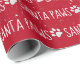 Vit SANTA TASS-text med snöflingor, tassavtryck för sällskapsdjur, med röd bakgrund. Bakgrunden till färg kan ändras.