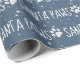 Vit SANTA TASS-text med snöflingor, pawprint, stars, på blå bakgrund. Text kan redigeras.