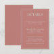 En underbar bilaga till ställe innehåller alla uppgifter som inte finns med på bröllopsinbjudan eller OSA kort - t.ex. mottagningsinformation eller bröllop webbplats. Korrekt koordinerar med Juliette Curated Färg-samlingen. Kontakta mig om du vill ha hjälp med att anpassa textdelen av den här detaljinfogningen.