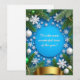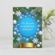 Ljus juldekoration med tallgrenar, snöflingor, ornament och ett gyllene band. Designen utstrålar högtidlig julstämning och ger en perfekt bakgrund för säsongsrelaterade hälsningar eller glada firandelayouter.